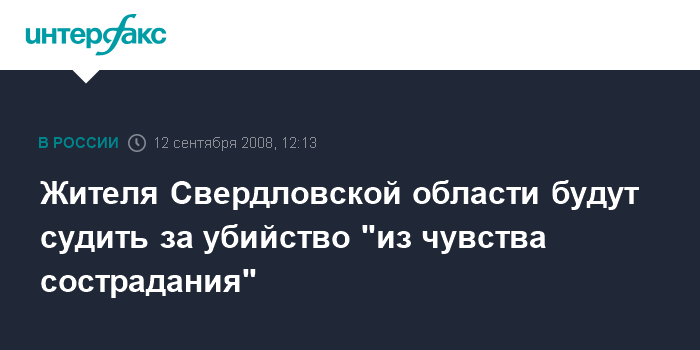Екатеринбург. 12 сентября. INTERFAX.RU - Жителю г. Асбеста Свердловской области предъявлено обвинение в убийстве (ст. 105 УК РФ) сожительницы, которую он якобы лишил жизни из жалости.