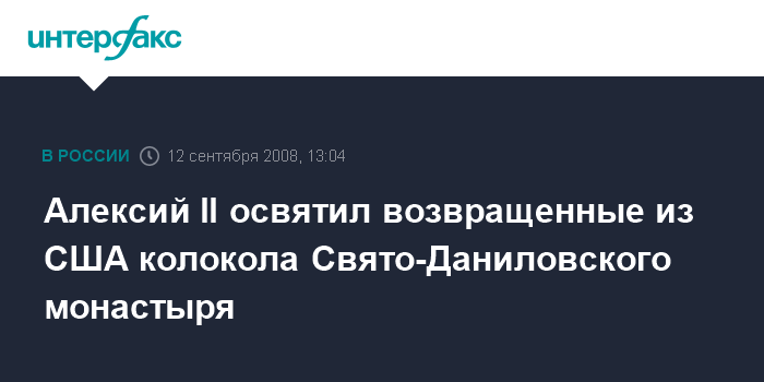 Алексий II освятил возвращенные из США колокола Свято-Даниловского монастыря