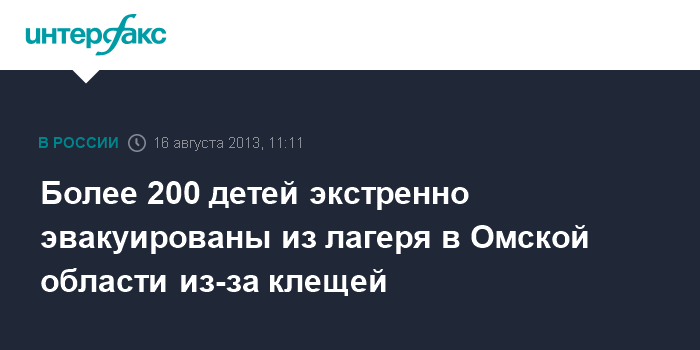 Омск. 16 августа. INTERFAX.RU - Отдыхавшие в одном из оздоровительных лагерей Омской области дети были экстренно эвакуированы после обнаружения на территории учреждения клещей, сообщает пресс-служба УМВД по региону в пятницу.