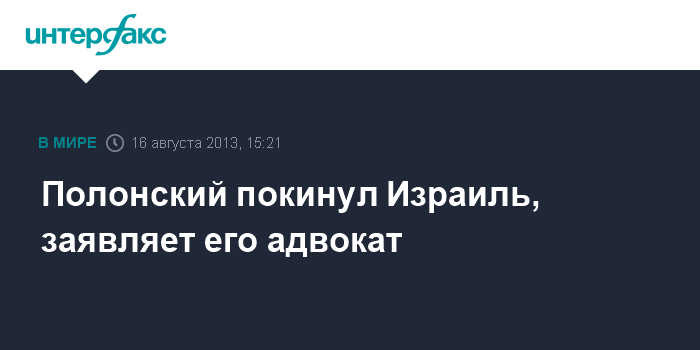 По словам адвоката, отъезд ее клиента из страны не связан с какими-либо судебными делами или с процессом получения документов, позволяющих Полонскому жить и работать на территории Израиля. Адвокат не дала каких-либо дополнительных разъяснений, а также не стала отвечать на вопрос "Интерфакса" о том, поступали ли угрозы от каких-либо лиц Полонскому в последнее время.