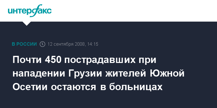 Почти 450 пострадавших при нападении Грузии жителей Южной Осетии остаются в больницах