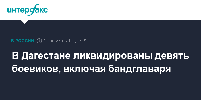 Москва. 20 августа. INTERFAX.RU - Спецназ ликвидировал в Буйнакске девять боевиков, включая главаря Баматхана Шейхова, сообщили "Интерфаксу" в Национальном антитеррористическом комитете.