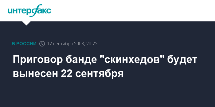 Приговор банде "скинхедов" будет вынесен 22 сентября