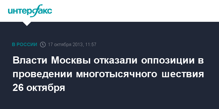Власти Москвы отказали оппозиции в проведении многотысячного шествия 26 октября