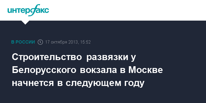 Москва. 17 октября. INTERFAX.RU - В 2014 г. начнется строительство транспортной развязки на площади у Белорусского вокзала, заявил журналистам в четверг заместитель мэра Москвы Марат Хуснуллин.