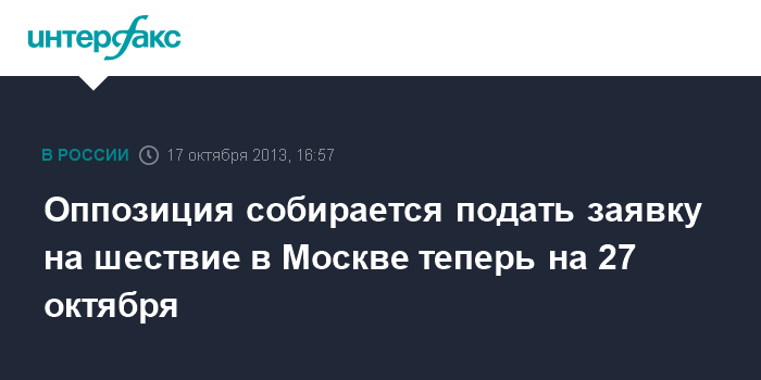 Москва. 17 октября. INTERFAX.RU - Оппозиция собирается подать заявку на проведение акции 27 октября.