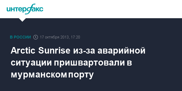 По его словам, Arctic Sunrise 15 октября доставили из губы Кулонга к причалам мурманского морского торгового порта в связи с аварийной ситуацией. Буксировкой занималась береговая охрана погрануправления ФСБ России по Мурманской области. Она же сейчас охраняет иностранное судно.