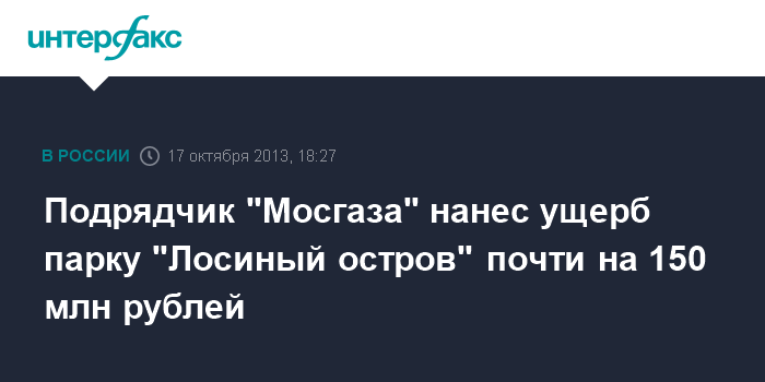 Москва. 17 октября. INTERFAX.RU - Минприроды требует возбудить уголовные дела в отношении подрядчика "Мосгаза" - ЗАО "КапСтройРеконструкция", которое занимается строительством на территории национального парка "Лосиный остров".