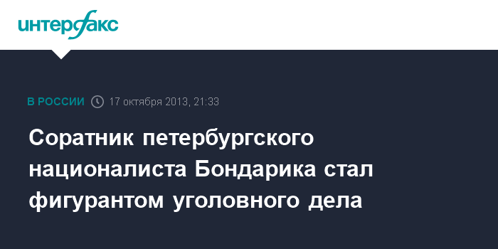 Соратник петербургского националиста Бондарика стал фигурантом уголовного дела
