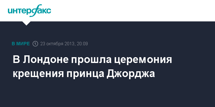 Лондон. 23 октября. INTERFAX.RU - Церемония крещения принца Джорджа - третьего в очереди на британский престол - состоялась в Королевской часовне Сент-Джеймсского дворца в Лондоне, сообщает в среду британская телерадиокорпорация BBC.