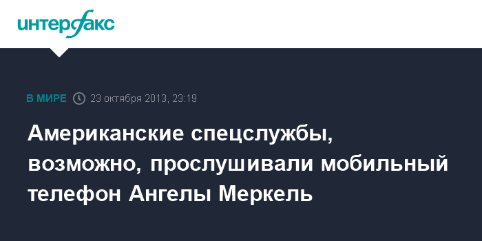 Берлин. 23 октября. INTERFAX.RU - Американские спецслужбы, возможно, отслеживали телефонные переговоры канцлера ФРГ Ангелы Меркель, пишет в среду сайт журнала Spiegel.