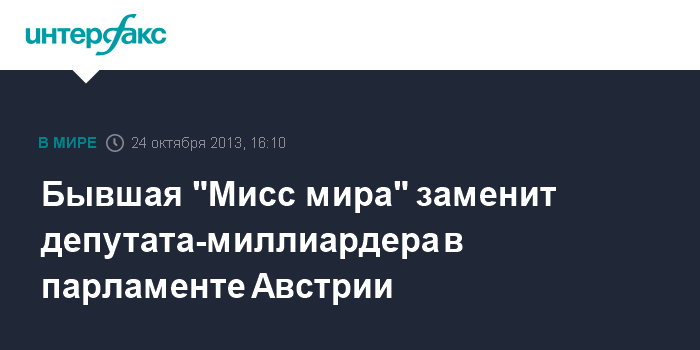 Бывшая "Мисс мира" заменит депутата-миллиардера в парламенте Австрии