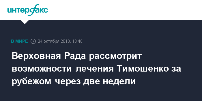 Киев. 24 октября. INTERFAX.RU - Верховная Рада Украины на следующей пленарной неделе рассмотрит три законопроекта о возможности лечения заключенных за рубежом, которые смогут решить вопрос экс-премьера Юлии Тимошенко.