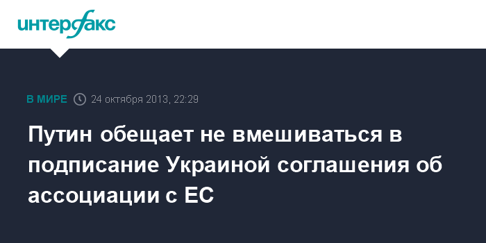 Путин обещает не вмешиваться в подписание Украиной соглашения об ассоциации с ЕС