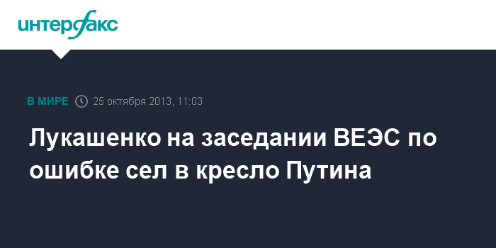 Лукашенко на заседании ВЕЭС по ошибке сел в кресло Путина