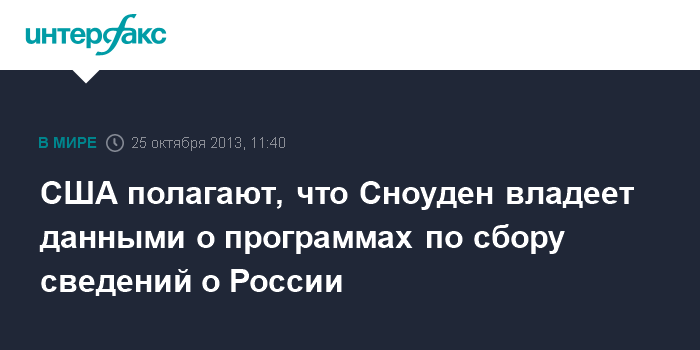 США полагают, что Сноуден владеет данными о программах по сбору сведений о России