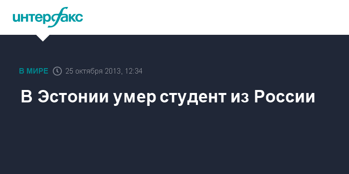 Таллин. 25 октября. INTERFAX.RU - В посольстве Российской федерации в Эстонии подтвердили факт смерти студента из России в эстонском городе Тарту (Tartu), однако пока не могут назвать его имени и причин смерти.