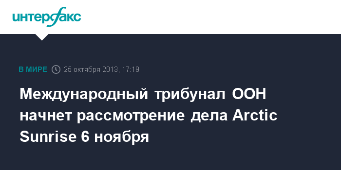 Киев. 25 октября. INTERFAX.RU - Слушания по делу судна Arctic Sunrise начнутся в Международном трибунале ООН по морскому праву 6 ноября текущего года, сообщил в интервью немецкой радиостанции NDR председатель суда Сюндзи Янаи.