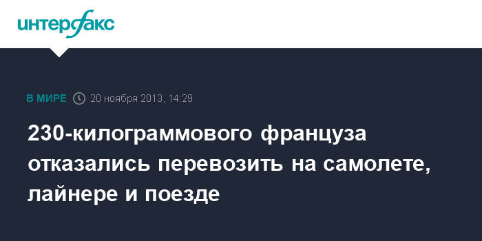 230-килограммового француза отказались перевозить на самолете, лайнере и поезде