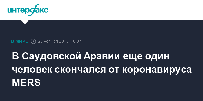 Кроме того, стало известно об очередном случае заражения MERS. Заболевшим оказался 65-летний мужчина из Саудовской Аравии, который уже лечится в одной из больниц Эр-Рияда.