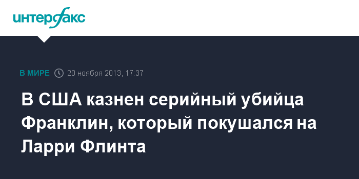 В США казнен серийный убийца Франклин, который покушался на Ларри Флинта