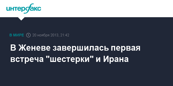 Женева. 20 ноября. INTERFAX.RU - В Женеве завершилась первая пленарная встреча "шестерки" и Ирана, она продлилась лишь несколько минут, сообщают из Женевы западные СМИ.