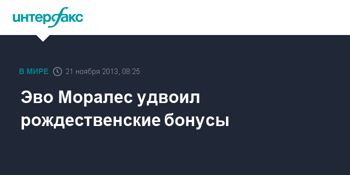 Лондон. 21 ноября. INTERFAX.RU - Президент Боливии Эво Моралес распорядился об увеличении рождественского бонуса работникам частных и государственных компаний, передает BBC.