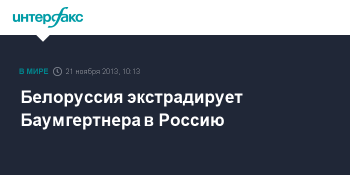 "Генпрокуратура Белоруссии известила о том, что принято решение об экстрадиции В.Баумгертнера", - сказал представитель Генпрокуратуры России в четверг.