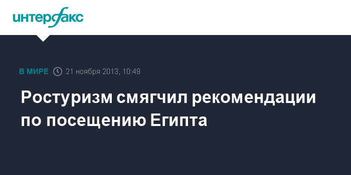 Москва. 21 ноября. INTERFAX.RU - Обстановка, складывающаяся в настоящее время в Египте, не препятствует посещению туристических районов Красного моря российскими гражданами, сообщили в Ростуризме.
