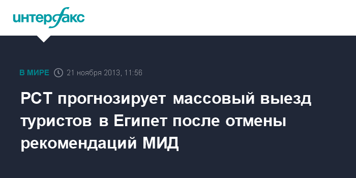 РСТ прогнозирует массовый выезд туристов в Египет после отмены рекомендаций МИД
