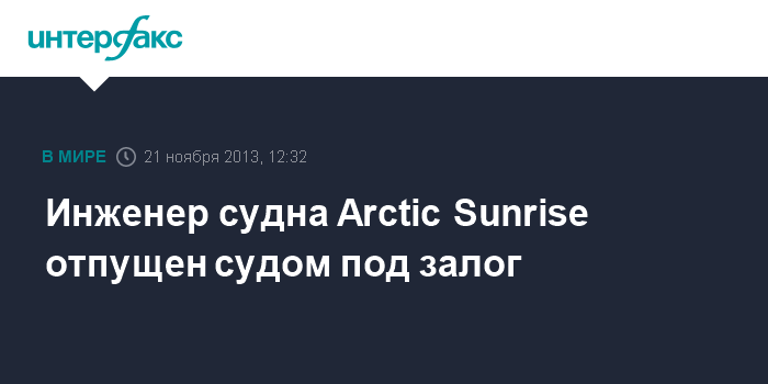 Инженер судна Arctic Sunrise отпущен судом под залог