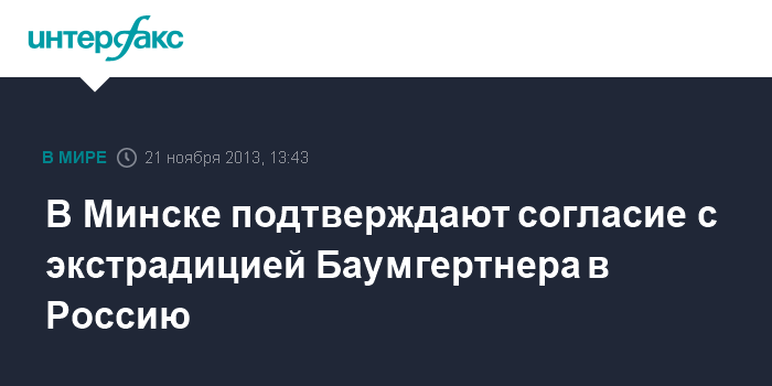 В Минске подтверждают согласие с экстрадицией Баумгертнера в Россию