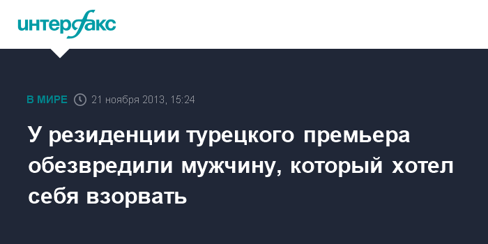 Стамбул. 21 ноября. INTERFAX.RU - Сотрудники службы безопасности задержали человека, предположительно, собиравшегося совершить самоподрыв возле резиденции премьер-министра Турции Реджепа Тайипа Эрдогана в Анкаре, сообщает в четверг турецкая газета Hurriyet.