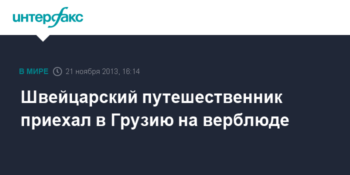 Тбилиси. 21 ноября. INTERFAX.RU - Гражданин Швейцарии Вердон Роланд прибыл в Грузию на верблюде, сообщает пресс-служба Национальной администрации туризма страны в четверг.