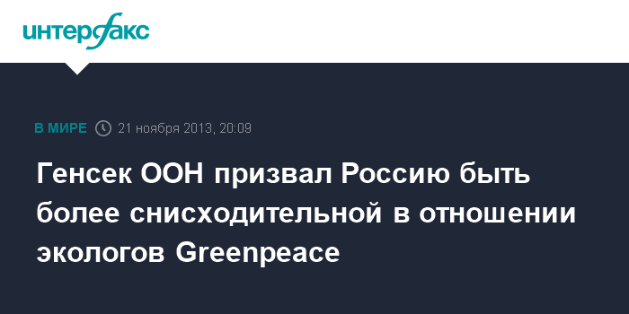 Генсек ООН призвал Россию быть более снисходительной в отношении экологов Greenpeace