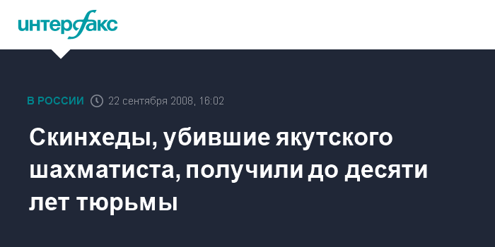Скинхеды, убившие якутского шахматиста, получили до десяти лет тюрьмы