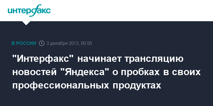 Лента "Яндекс.Пробки" будет доступна всем медиаклиентам группы "Интерфакс", среди которых почти все значимые средства массовой информации России.