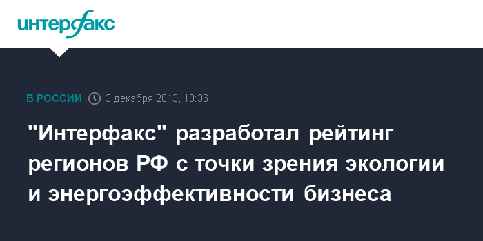 "Интерфакс" разработал рейтинг регионов РФ с точки зрения экологии и энергоэффективности бизнеса