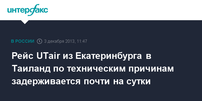 Рейс UTair из Екатеринбурга в Таиланд по техническим причинам задерживается почти на сутки