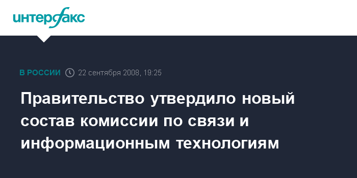 Москва. 22 сентября. INTERFAX.RU - Председатель правительства РФ Владимир Путин утвердил новый состав правительственной комиссии по федеральной связи и информационным технологиям, которую возглавил министр связи и массовых коммуникаций РФ Игорь Щеголев.