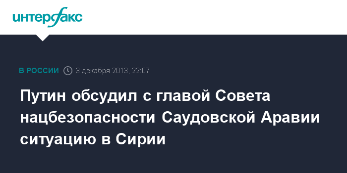 Путин обсудил с главой Совета нацбезопасности Саудовской Аравии ситуацию в Сирии