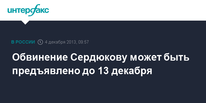 Обвинение Сердюкову может быть предъявлено до 13 декабря
