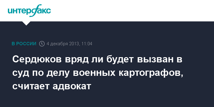 Сердюков вряд ли будет вызван в суд по делу военных картографов, считает адвокат