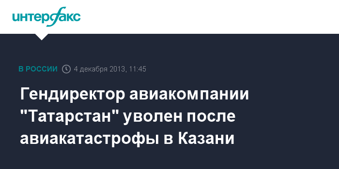 Гендиректор авиакомпании "Татарстан" уволен после авиакатастрофы в Казани