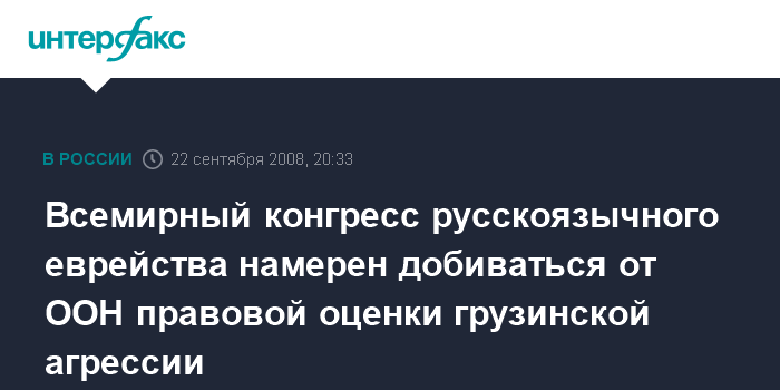 Всемирный конгресс русскоязычного еврейства намерен добиваться от ООН правовой оценки грузинской агрессии
