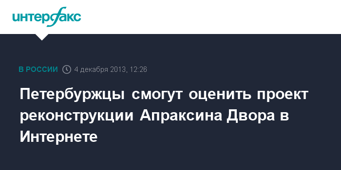Санкт-Петербург. 4 декабря. INTERFAX.RU - На Едином инвестиционном портале Санкт-Петербурга до конца декабря открыт опрос общественного мнения о концепции преобразования территории Апраксина Двора, сообщает пресс-служба комитета по инвестициям.