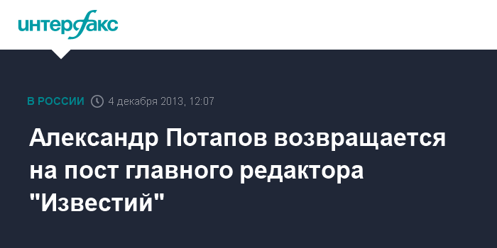 Александр Потапов возвращается на пост главного редактора "Известий"