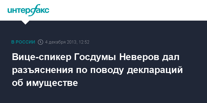 Москва. 4 декабря. INTERFAX.RU - Вице-спикер Госдумы от "Единой России" Сергей Неверов дал в среду разъяснения профильной комиссии Госдумы после требования главреда журнала The New Times Евгении Альбац проверить достоверность его имущественных деклараций.