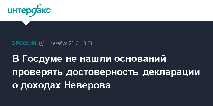 Москва. 4 декабря. INTERFAX.RU - Парламентская комиссия по контролю за доходами депутатов единогласно решила, что оснований для проведения проверки достоверности декларации о доходах вице-спикера Госдумы Сергея Неверова нет.