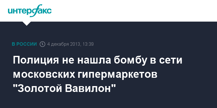 Полиция не нашла бомбу в сети московских гипермаркетов "Золотой Вавилон"